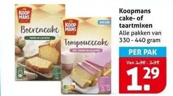 Bekijk de meest recente aanbiedingen en blijf op de hoogte van welke winkels Koopmans cake of taartmixen op korte termijn met korting aanbieden. Niemand betaalt graag te veel – daarom houden wij de prijzen scherp in de gaten. Pas je (boodschappen)lijst aan op basis van acties van deze week én verwachte deals. Sommige aanbiedingen gelden alleen in de winkel, dus check regelmatig waar Koopmans cake of taartmixen het voordeligst verkrijgbaar is.Veelgestelde vragen over Koopmans cake of taartmixen