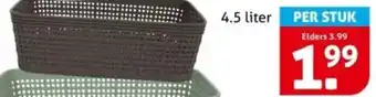 Op zoek naar handige opbergmanden? Deze manden van 4.5 liter per stuk zijn ideaal voor het organiseren van kleine spullen in huis. Elders betaal je maar liefst 3.99 per mand, maar bij ons zijn ze slechts 1.99 per stuk! De manden zijn gemaakt van stevig materiaal en hebben handvatten voor eenvoudig verplaatsen. Of je nu speelgoed, kleding of keukengerei wilt opbergen, deze manden bieden de perfecte oplossing. Dankzij het compacte formaat passen ze gemakkelijk in kasten, op planken of onder het bed. Bestel nu en creëer snel meer orde en overzicht in huis met deze voordelige en praktische manden!