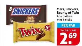 Hoogvliet biedt naast de Mars snickers bounty of twix een ruime collectie producten aan. Houd de wekelijkse Hoogvliet folder in de gaten om de beste aanbiedingen en acties te vinden. Naast Mars snickers bounty of twix, kunt u ook de volgende aanbiedingen vinden: Snickers, Twix, Bounty en Mars, Twix & Bounty.