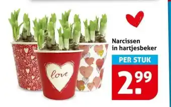 Narcissen in hartjesbeker aanbieding en online acties bij Hoogvliet