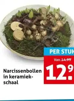 Narcissenbollen in keramiek- schaal aanbieding en online acties bij Hoogvliet