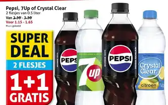 Pepsi, 7Up of Crystal Clear aanbieding bij Hoogvliet