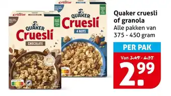 Koop Quaker cruesli of granola komende week met korting