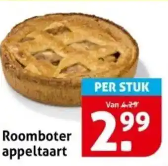 Geniet van een heerlijke roomboter appeltaart voor slechts 2.99 per stuk. Deze ambachtelijk bereide taart zit boordevol verse appels en is afgemaakt met een krokante korst van roomboterdeeg. De zoete appels vormen een perfecte combinatie met de romige roomboter, waardoor elke hap een waar genot is. Of je nu een feestje hebt of gewoon zin hebt in iets lekkers bij de koffie, deze roomboter appeltaart is altijd een goede keuze. Bestel nu en laat je verrassen door de heerlijke smaak van deze ambachtelijke lekkernij. Perfect voor elke gelegenheid en nu extra voordelig geprijsd. Bestel snel en geniet van deze smaakvolle traktatie!