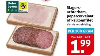 Slagersachterham, pepercervelaat of kalkoenfilet korting bij Hoogvliet