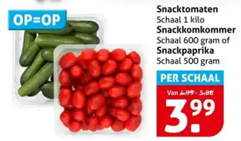 Snacktomaten, Snackkomkommer of Snackpaprika PER SCHAAL 3.99