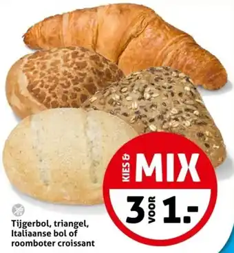 Tijgerbol, triangel, Italiaanse bol of roomboter croissant korting bij Hoogvliet