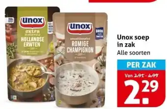 Unox soep in zak korting bij Hoogvliet