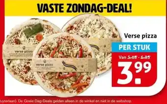 De prijs van de Verse pizza kan ook teruggevonden worden hierboven op de pagina, samen met de datum van wanneer de aanbieding beschikbaar is. Ook kun je de prijzen in de huidige Hoogvliet folder of op de Hoogvliet website controleren. De aanbiedingen verzekeren je van het kopen van de Hoogvliet producten voor de laagste prijs.