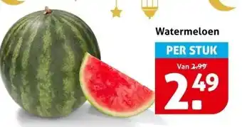 De aanbieding is verkrijgbaar in verschillende winkels, bekijk alle producten om de goedkoopste Watermeloen te krijgen. Als je graag wilt kijken of het artikel met meer korting te koop is in een andere winkel, bekijk de categorie 'Supermarkt'. Wellicht vind je deze aanbiedingen ook interessant: Watermeloen salade 200g 2x, Hoogvliet Watermeloen & Gesneden watermeloen of ananas.
