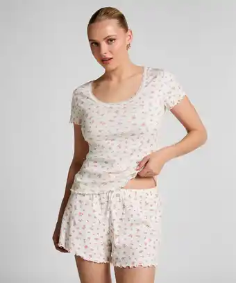 Hunkemöller Geribde pyjamashort Wit aanbieding en online acties bij Hunkemoller