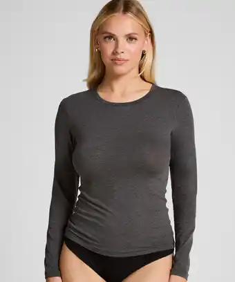 Actuele Hunkemöller Lange mouwen shirt van zachte katoen Grijs aanbieding bij Hunkemoller van 6-02 t/m 12-02.