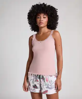 Actuele Hunkemöller Pyjamaset met rib en kant Roze aanbieding bij Hunkemoller van 26-02 t/m 4-03.