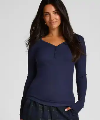 Actuele Hunkemöller Pyjamatop met lange mouwen Henley Blauw aanbieding bij Hunkemoller van 30-01 t/m 5-02.