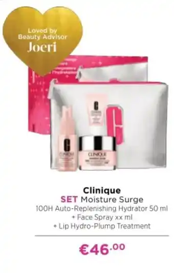 De Clinique SET Moisture Surge 100H Auto-Replenishing Hydrator 50 ml is een geliefd product bij Beauty Advisor Joeri. Deze set bevat naast de hydrator ook een Face Spray en Lip Hydro-Plump Treatment. De hydrator zorgt voor 100 uur lang hydratatie en helpt de huidbarrière te versterken. De Face Spray verfrist en hydrateert de huid direct, terwijl de Lip Hydro-Plump Treatment zorgt voor volle en gehydrateerde lippen. Deze set is ideaal voor iedereen die op zoek is naar intensieve hydratatie en verzorging van de huid. Voor slechts €46.00 krijg je deze complete set met hoogwaardige producten van Clinique. Bestel nu en geniet van een stralende en gehydrateerde huid!