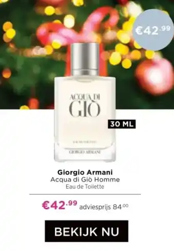 ICI Paris XL biedt naast de Giorgio Armani Acqua di Giò Homme een ruime collectie producten aan. Houd de wekelijkse ICI Paris XL folder in de gaten om de beste aanbiedingen en acties te vinden. Naast Giorgio Armani Acqua di Giò Homme, kunt u ook de volgende aanbiedingen vinden: Giorgio Armani - Acqua di Gio pour homme - Refillable Eau de toilette - 100 ml, Armani Acqua di Giò Homme & Armani Acqua di Giò Homme Elixir.