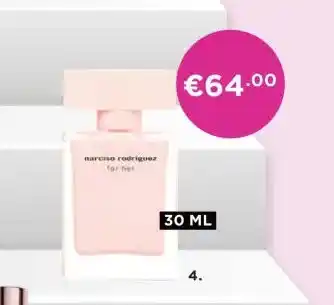 Nu in de aanbieding bij ICI Paris XL: Narciso Rodriguez For Her✅ Actie geldig van 20-04 t/m 26-04.