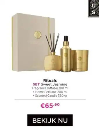 Rituals SET Sweet Jasmine Fragrance Diffuser 100 ml + Home Perfume 200 ml + Scented Candle 360 gr €65.90 BEKIJK NU