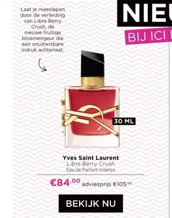 De prijs van de Yves Saint Laurent Libre Berry Crush kan ook teruggevonden worden hierboven op de pagina, samen met de datum van wanneer de aanbieding beschikbaar is. Ook kun je de prijzen in de huidige ICI Paris XL folder of op de ICI Paris XL website controleren. De aanbiedingen verzekeren je van het kopen van de ICI Paris XL producten voor de laagste prijs.