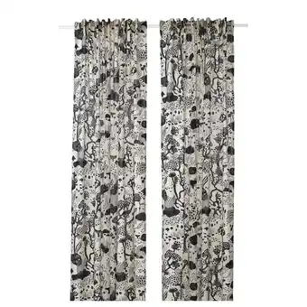 Actuele Beige gordijnen met grijze bloemmotieven, linnen-katoenmix, ideaal voor ramen of scheidingswanden aanbieding bij IKEA van 9-04 t/m 27-04.