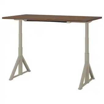 Bruin idÅsen bureau, beige poten, in hoogte verstelbaar aanbieding bij IKEA – binnenkort verwacht