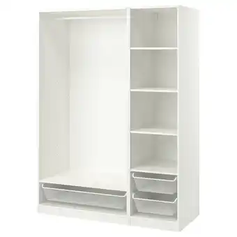 Actuele Een wit pax garderobesysteem met een open kast en planken, inclusief opbergmanden van gaas aanbieding bij IKEA van 12-02 t/m 2-03.