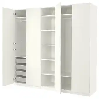 De prijs van de Een witte pax-kledingkast met open deuren, onthullende planken en gaasmanden aan de binnenkant kan ook teruggevonden worden hierboven op de pagina, samen met de datum van wanneer de aanbieding beschikbaar is. Ook kun je de prijzen in de huidige folder of op de IKEA website controleren. De aanbiedingen verzekeren je van het kopen van de IKEA producten voor de laagste prijs.
