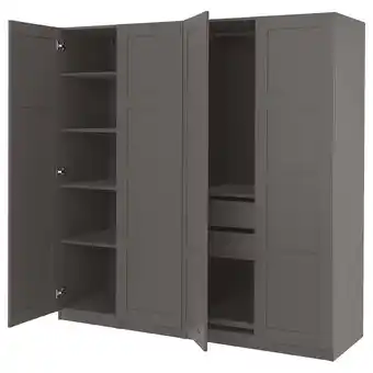 Grijze ikea pax kledingkast met open deuren, verstelbare planken aanbieding en online acties bij IKEA