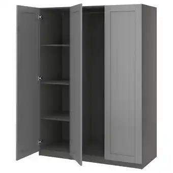 Koop Grijze pax kledingkast, open deuren onthullen planken komende week met korting