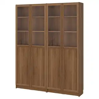 Grote houten boekenkast met zes glazen deuren, met meerdere planken korting bij IKEA