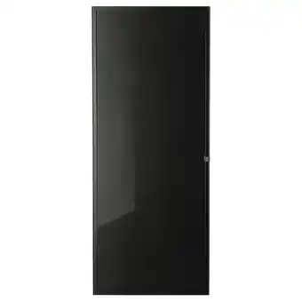 HÖgbo deur: zwart glazen paneel, strak aluminium frame, rechthoekige vorm voor billy boekenkast aanbieding bij IKEA – binnenkort verwacht