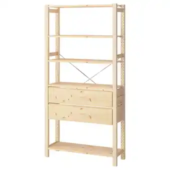 Actuele Ivar 1 element, grenen/met 5 planken met 2 lades, 89x30x179 cm aanbieding bij IKEA van 1-10 t/m 31-03.