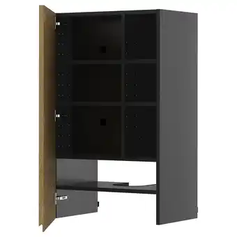 Moderne grijze metod kast met eiken deur open, met binnenplanken aanbieding bij IKEA