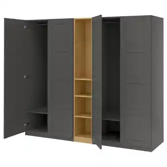 Actuele Pax / bergsbo Kledingkastcombinatie, donkergrijs donkergrijs/eikenpatroon, 235x60x201 cm aanbieding bij IKEA van 12-02 t/m 2-03.