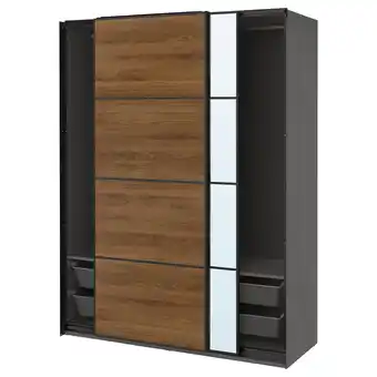 Actuele Pax / mehamn/auli Kledingkast met schuifdeuren, donkergrijs zwart/walnoot spiegelglas, 150x66x201 cm aanbieding bij IKEA van 12-02 t/m 2-03.