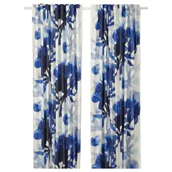 Actuele SkogsnÄssla Gordijnen, 1 paar, wit/blauw bloemenpatroon/met plooiband, 145x280 cm aanbieding bij IKEA van 9-04 t/m 27-04.