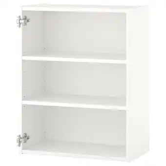 Nu in de aanbieding bij IKEA: Witte enhet wandkast, drie vierkante planken, eenvoudig modern design, ideaal voor flessen en potten✅ Actie geldig van 18-12 t/m 12-01.