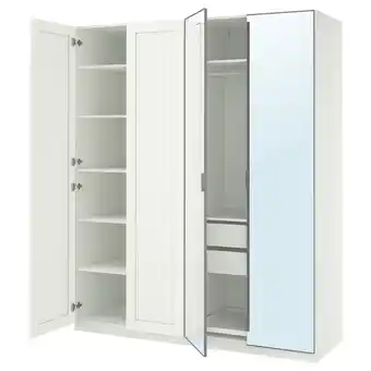 Witte ikea pax kledingkast met open deuren, verstelbare planken, hanggedeelte, spiegeldeur aanbieding en online acties bij IKEA
