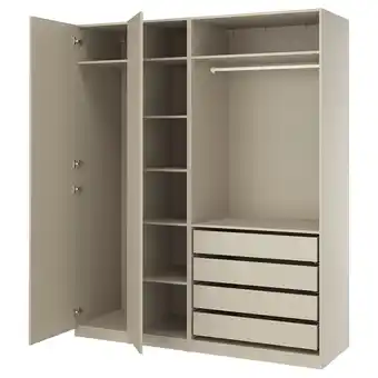Witte pax kledingkast: 2-deurs, 3 planken, 3-ladekast, beige, modern minimalistisch design aanbieding en online acties bij IKEA