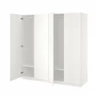 IKEA biedt naast de Witte pax kledingkast met beide deuren open, met lege planken en soft-close scharnieren een ruime collectie producten aan. Houd de wekelijkse folder in de gaten om de beste aanbiedingen en acties te vinden. Naast Witte pax kledingkast met beide deuren open, met lege planken en soft-close scharnieren, kunt u ook de volgende aanbiedingen vinden: Witte ikea pax kledingkast met open deuren, met lege planken en ophangstang, Open witte bloemenkast met planken, rail en soft-close scharnieren & Een witte ikea pax kledingkast met open deuren, die lege planken en lades onthullen.