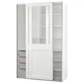 Actuele Witte pax kledingkast met glazen deuren en gaasmanden aanbieding bij IKEA van 12-02 t/m 2-03.