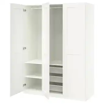 Actuele Witte pax kledingkast met open deur, planken en gaasmand aanbieding bij IKEA van 12-02 t/m 2-03.