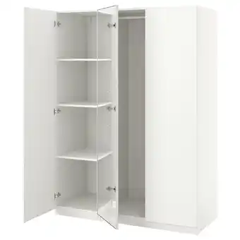 Witte pax kledingkast met spiegeldeuren, drie interne planken en een strak modern design aanbieding en online acties bij IKEA