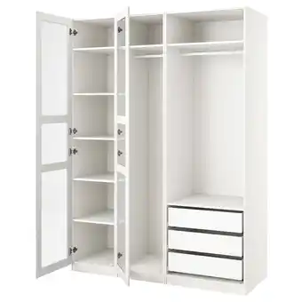 IKEA biedt naast de Witte pax kledingkast, open deuren met meerdere planken en een ladegedeelte, strak en modern design een ruime collectie producten aan. Houd de wekelijkse folder in de gaten om de beste aanbiedingen en acties te vinden. Naast Witte pax kledingkast, open deuren met meerdere planken en een ladegedeelte, strak en modern design, kunt u ook de volgende aanbiedingen vinden: Witte pax kledingkast, open deuren, vier planken, modern design, Witte pax kledingkast met open deuren, met planken en opbergvakken, modern design & Een witte pax-kledingkast met open deuren die meerdere planken en gaaslades onthullen.