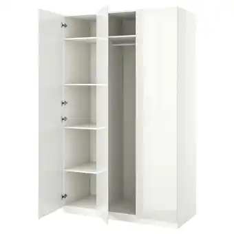 Actuele Witte pax kledingkast, open deuren, vier planken, modern design aanbieding bij IKEA van 12-02 t/m 2-03.