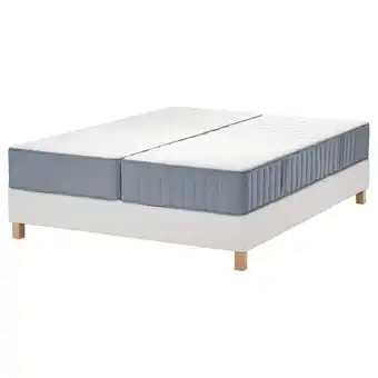 Actuele Witte split matrasset met houten poten aanbieding bij IKEA van 1-07 t/m 31-12.