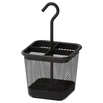 Actuele Zwarte uppdatera bestekstandaard, vierkante gaasvorm, 4 vakken, metalen handvat aanbieding bij IKEA van 26-02 t/m 16-03.