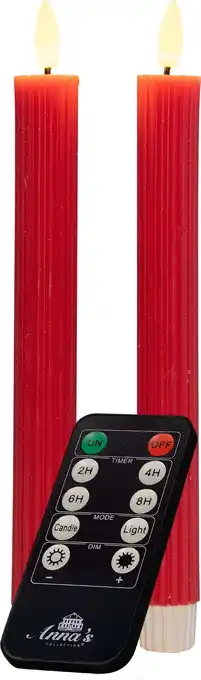 Anna's Collection LED dinerkaars Rib met timer rood D 2,1 H 23 cm 2 stuks