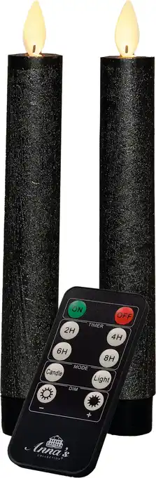 Anna's Collection LED dinerkaars Tara met timer antraciet D 2,2 H 18 cm 2 stuks
