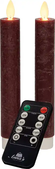 Anna's Collection LED dinerkaars Tara met timer bordeaux D 2,2 H 18 cm 2 stuks